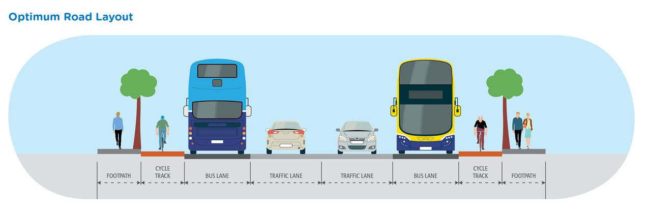 The bus corridors will deliver faster more frequent bus services for people throughout the capital by removing the need for bus passengers to compete with private cars who disproportionately clog up limited roadspace in areas like Phibsborough and Rathgar. These bus lanes combined with more priority signalling, park & ride locations, bus gates and enhanced ticketing should collectively make a substantial improvement to journey times throughout the capital.